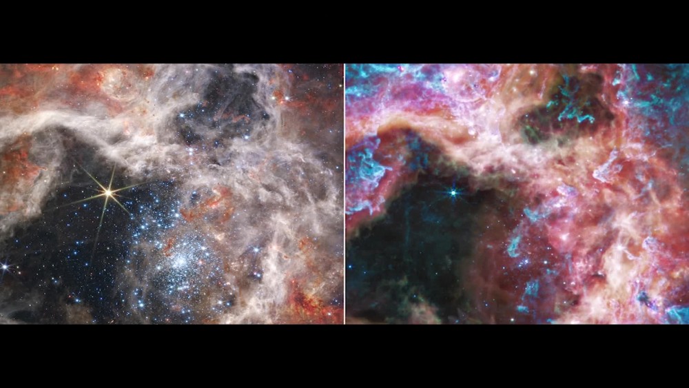 NASA's James Webb Space Telescope has captured thousands of never-before-seen young stars in the Tarantula Nebula, a stellar nursery called 30 Doradus.The young stars were previously shrouded from view by cosmic dust.Astronomers are using two of Webb's spectrographs to take a closer look at this region and determine the chemical makeup of a prominent older star and its surrounding gas.
