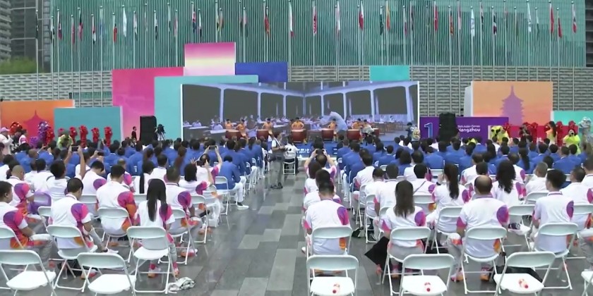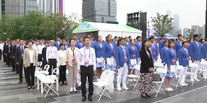 On 16th September, a welcome ceremony was held for the Chinese delegation at the main village of the 19th Asian Games, the temporary residence of global athletes during the upcoming event, in Hangzhou City of east China.