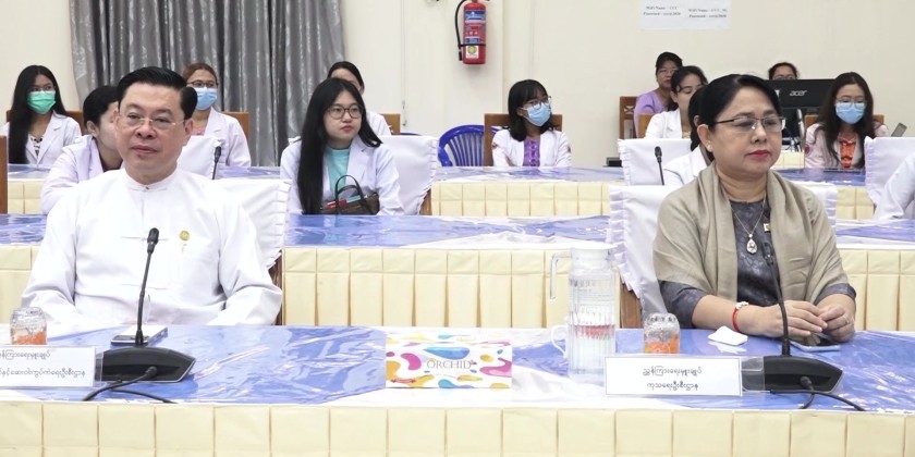 A semi-virtual welcome address ceremony for those who have been serving as intern doctors at the teaching hospitals of medical universities since October 1, 2025, was held by the Union Minister for the Ministry of Health Dr. Thet Khaing Win at 8:30 AM, on October 23.