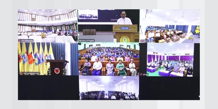 The ceremony was attended virtually by 302 new intern doctors from University of Medicine (1) (Yangon), 334 from University of Medicine (2) (Yangon), 281 from University of Medicine (Mandalay), 166 from University of Medicine (Magway), and 104 from University of Medicine (Taunggyi). Additionally, 53 persons attended in-person from the 1000-bed Nay Pyi Taw General Hospital, making a total of 1,240 attendees, it’s reported.
