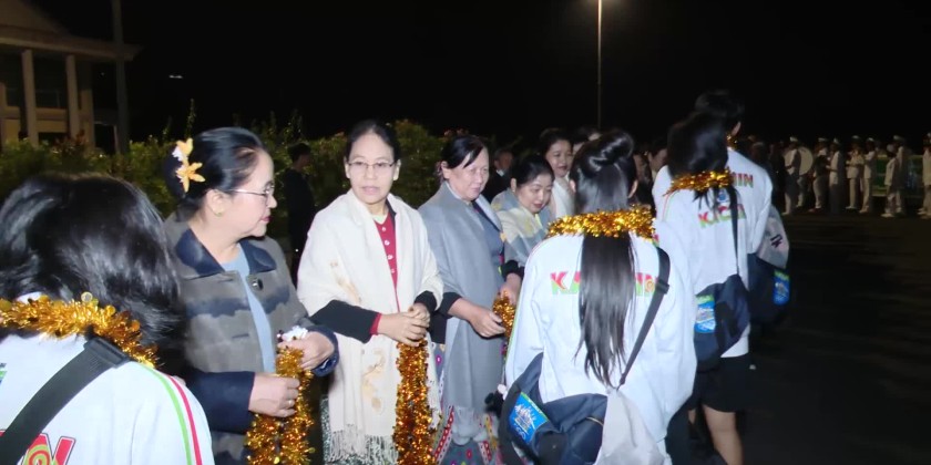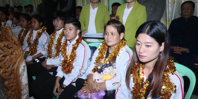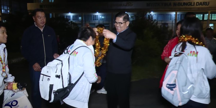 Kachin State teams competed in several events and, upon returning, were warmly welcomed at the Myitkyina Airportat 7 PM on December 15 by Chief Minister U Khet Htein Nan and wife, Chief Justice of the State High Court, State Government Ministers and their wives, State level departmental officials and families of athletes.