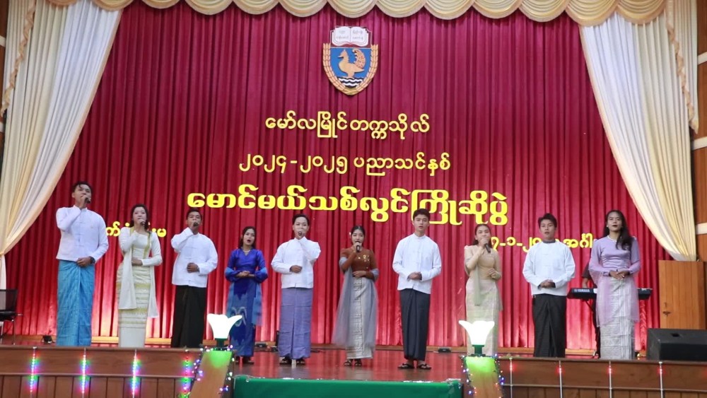 The ceremony began with a performance by the university’s art club members, who sang the song "Mya Kyun Nyo Nyo," officially opening the event. During his speech, the State Chief Minister U Aung Kyi Thein congratulated the fresher students, acknowledging their hard work and determination that led them to successfully pass the 2024 university entrance exams. He mentioned that, starting from November 21, 2024, Mawlamyine University has been offering bachelor’s and postgraduate courses for the 2024-2025 academic year, with 672 students currently enrolled in the first-year program. The Chief Minister expressed pride in the students' achievements and extended his congratulations.
