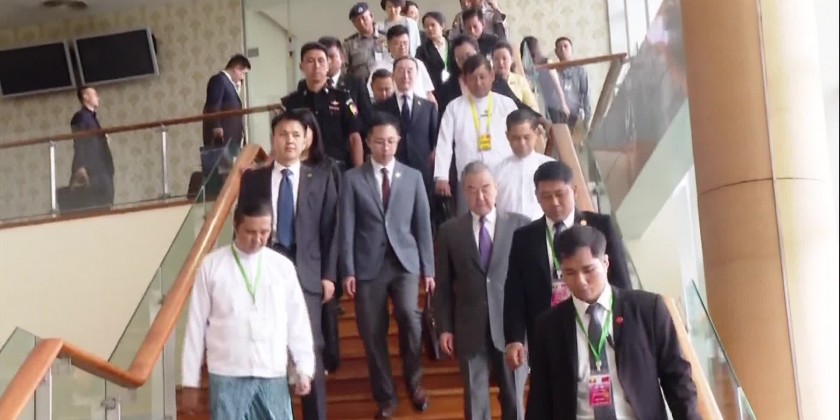 A delegation led by Member of the Political Bureau of Central Committee of Chinese Communist Party, Minister of Foreign Affairs of the People’s Republic of China Mr. Wang Yi arrived Nay Pyi Taw in the afternoon on 14th of August.