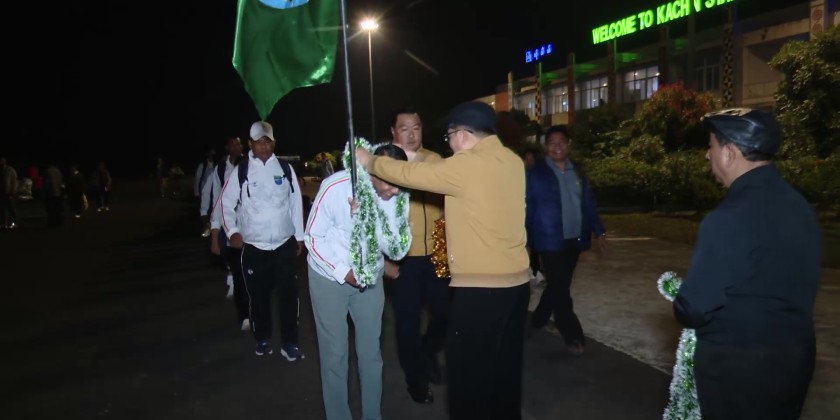 Chief Minister U Khet Htein Nan and officials welcomed the athletes at the airport, along with the band troupe and performance of Lisu traditional dance.