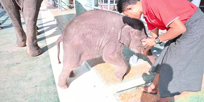 A white male elephant was born at 6:30 am on the 23rd of July 2022 by the 33-year-old female elephant called Zar Nan Hla from the Myanma Timber Enterprise in Taungup Township of Rakhine State.