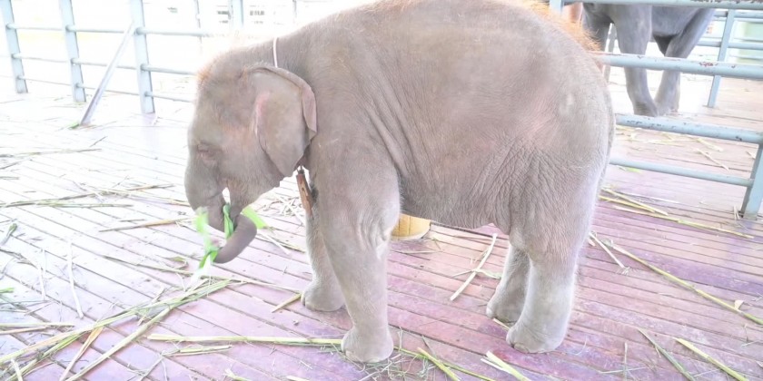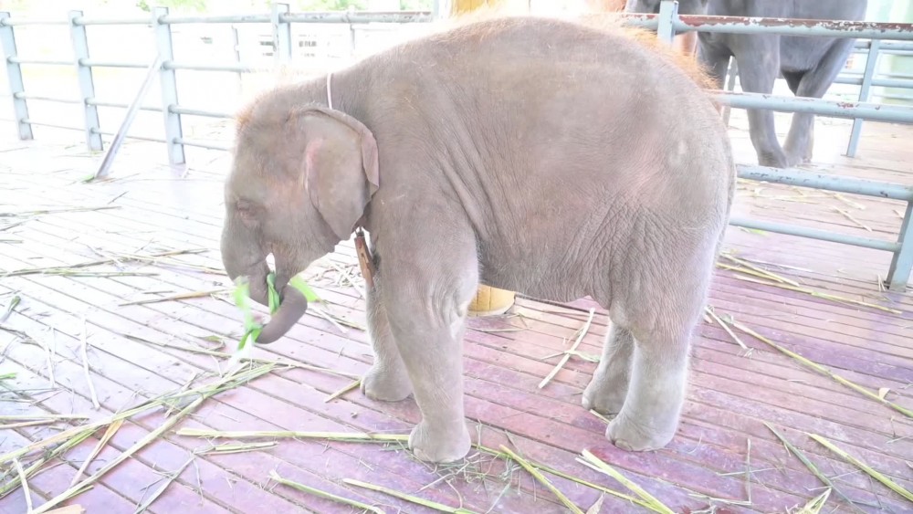 The title of the baby elephant is Rattha Nandaka. The newly-born white elephant has pearl-coloured eyes, a plantain branch-shaped back, white hair, a distinctive tail, auspicious plot signs on the skin, reddish-brown or pinkish skin, five claws on the front legs, four claws on the back legs and big ears. These features conform to seven out of eight characteristics of white elephant.