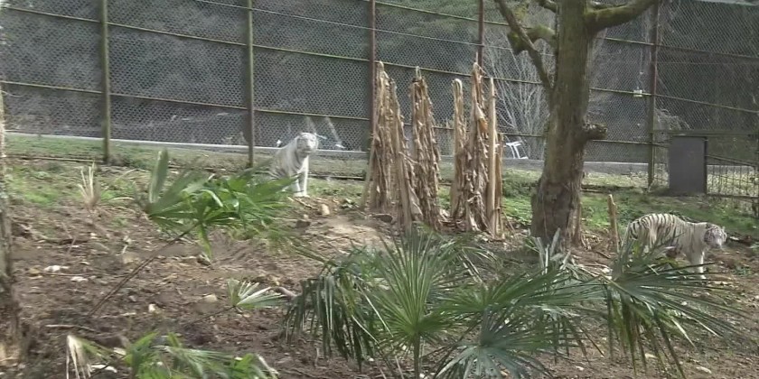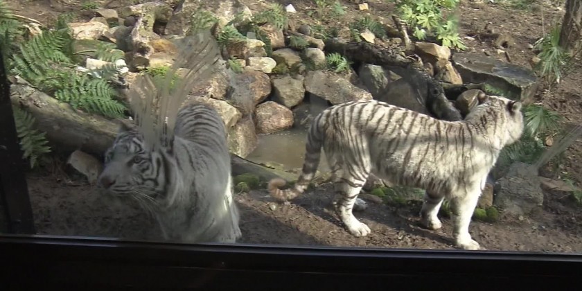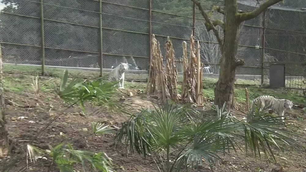 Three white tiger siblings have a new habitat at a zoo in Yamaguchi Prefecture, western Japan.