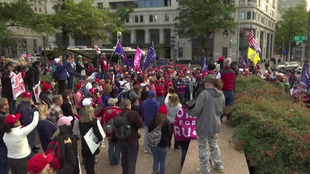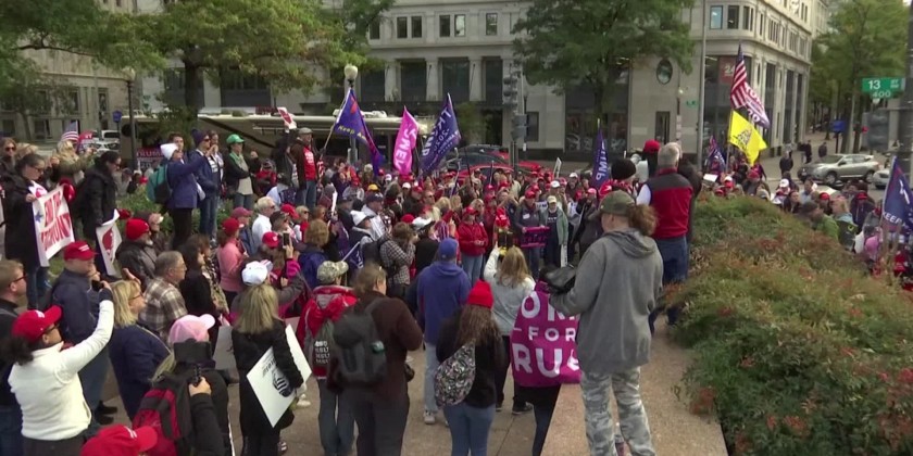 Dozens of women marched to the U.S. Capitol on Thursday in support of U.S. President Donald Trump. Some 100 women gathered to protest impeachment proceedings against the president. They held signs and banners as they chanted pro-Trump slogans. The event was organized by the group Women for America First. It was one of several rallies in various cities across the country.