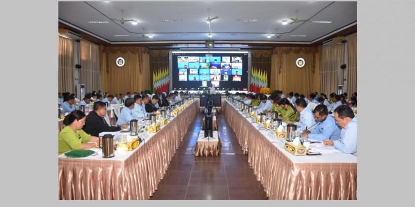 The work coordination meeting of the Ministry of Commerce for first half of 2023-2024 fiscal year was held as second day at the Ministry on Saturday with the attendance by Union Minister U Aung Naing Oo and the Director generals of the Department of Intellectual Property and Myanmar Trade Promotion Organization reported the departmental structure, status of work implementation and the plans to be implemented.