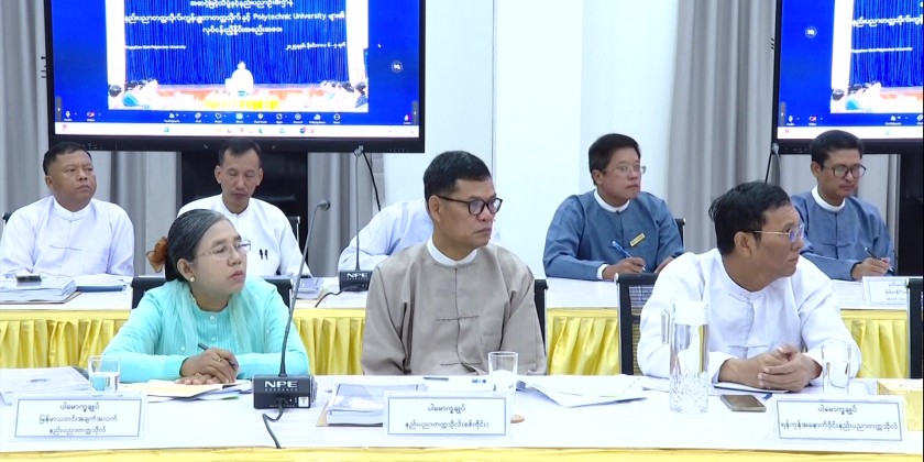 A work coordination meeting for Technological Universities, Computer Universities, and Polytechnic Universities under the Department of Higher Science and Technology, Ministry of Science and Technology, was held in a hybrid format at the meeting hall of the Nay Pyi Taw State Polytechnic University on November 6.