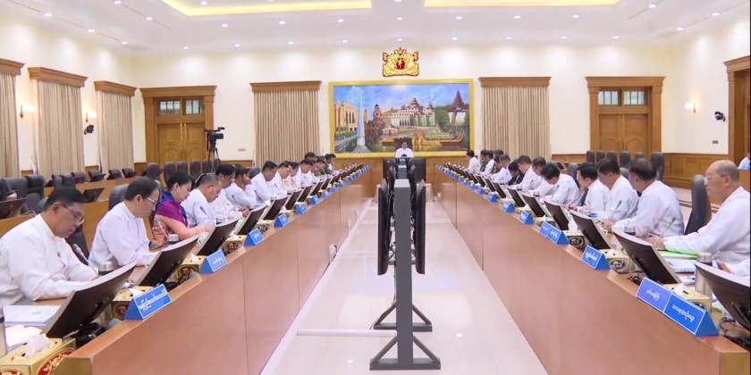 A work coordination meeting of the State Security and Peace Commission and Union Government was held at the commission office on Friday. Acting President, Commission Chairman Senior General Min Aung Hlaing attended the meeting and made a speech.