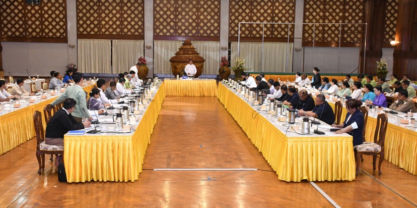 Next, the Chairman of Region Child Labour Elimination Committee Region Minister for Ethnic Affairs clarified regarding with the formation of the (8) work committees and the committee secretary regarding with the duties and tasks of those work committees. Then, the chairmen of the committee explained the relevant work implementations.Afterward, the committee patron region Chief Minister coordinated necessary matters and gave a speech of conclusion.