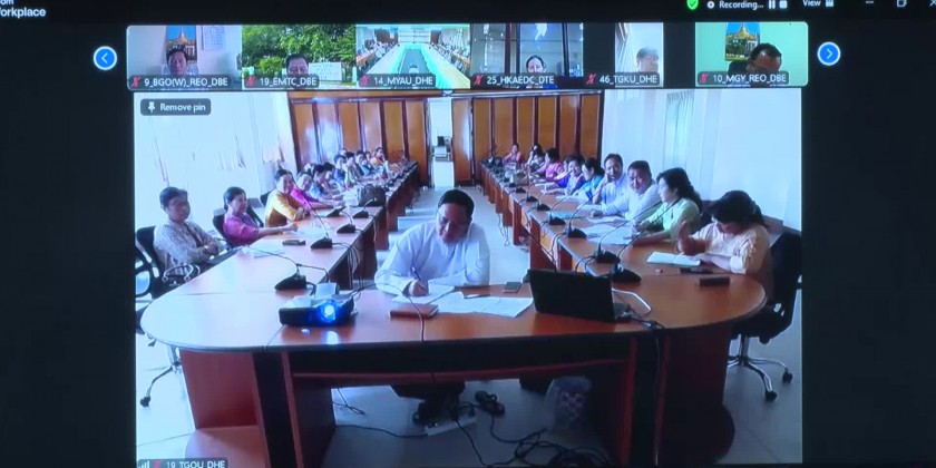 Union Minister for Education Dr. Nyunt Pe held a work guidance meeting with the Rectors, Principals, Professors/Heads of departments, Regions and States Education Officials on Tuesday at the meeting hall of the Ministry in Nay Pyi Taw through Virtual System.