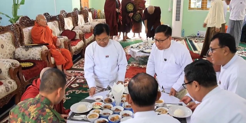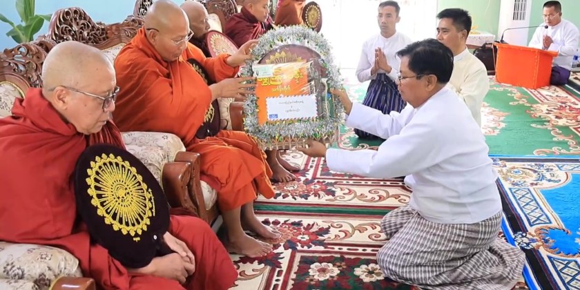 Additionally, the Chief Minister and officials attended the Libation Ceremony for Renovation of Loikaw University’s Prayers' Hall. Members of the Sangha performed religious rituals, and officials made donations. The ceremony concluded with the sharing of merits gained, and offering of day meal to the members of the Sangha.