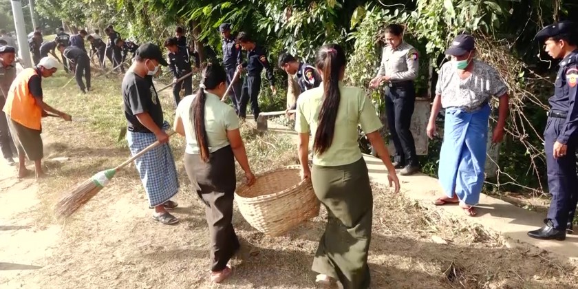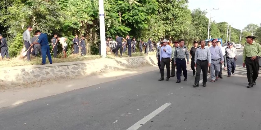 On Saturday, members of the Myanmar Police Force and Fire Brigade, staff from the General Administration Department, Development Affairs Committee, departmental staff, local residents, and social organizations took part in the cleaning works along the Chindwin River bank in Kyawe Gyi Ward. Chief Minister U Myat Kyaw oversaw the activities and provided food to the participants.
