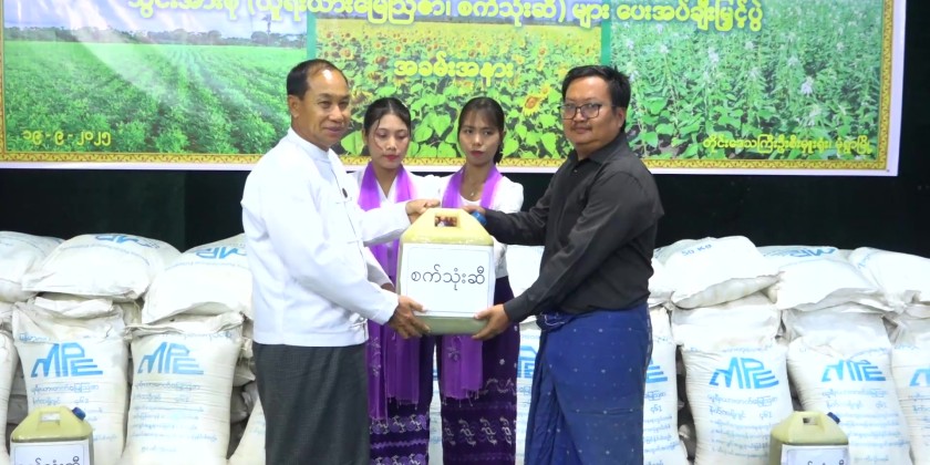 Speaking on the occasion, the Chief Minister urged on efficient utilization of farmlands, accelerating multi-cropping and oil crop plantations to substitute oil imports, heard reports on current work implementation of the respective committee to increase 2025-2026 monsoon oil crop plantations and coordinated necessities. He then provided Urea fertilizer and fuel for 500 local farmers from 16 villages within Monywa Township.