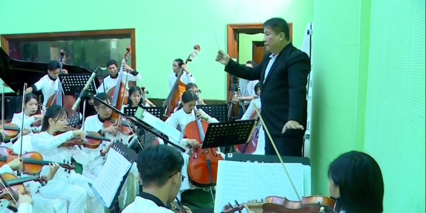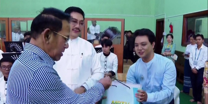 On arrival at Myanma Radio and Television Yangon Headquarter, the Union Minister inspected the music programs of the National Symphony Orchestra which will perform at a dinner reception commemorating the 77th Independence Day.