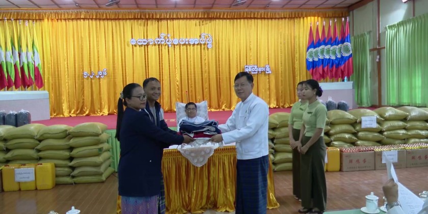 In addition, the Chief Minister met with internally displaced families, staying in temporary shelters in Myitkyina, and provided rice, cooking oil, and eggs to 332 households from seven temporary camps. The Chief Minister said the state government will continue to support displaced families with food, health, and social assistance and called for cooperation in peace and development efforts.