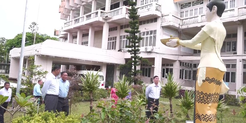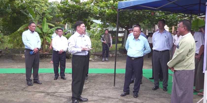 Rakhine State Chief Minister U Htein Lin and his wife, the Patron of State Women’s Affairs Association accompanied by concerned officials visited departmental offices within Sittwe Township on 16th August.
