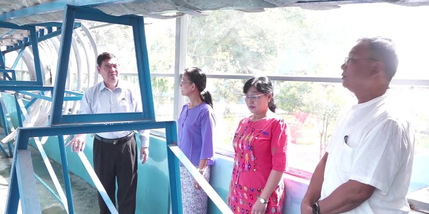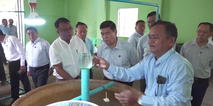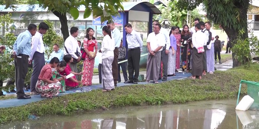 Next, the Chief Minister and party oversaw the teaching and learning condition of Induced Fish Breeding Course and cordially greeted the trainers and trainees. The Chief Minister and party also overviewed the water quality testing and inspected the preparations to conduct small scale shrimp farming camp and coordinated necessities. The Chief Minister and party also inspected the road upgrading project in Pyitawthar Ward.