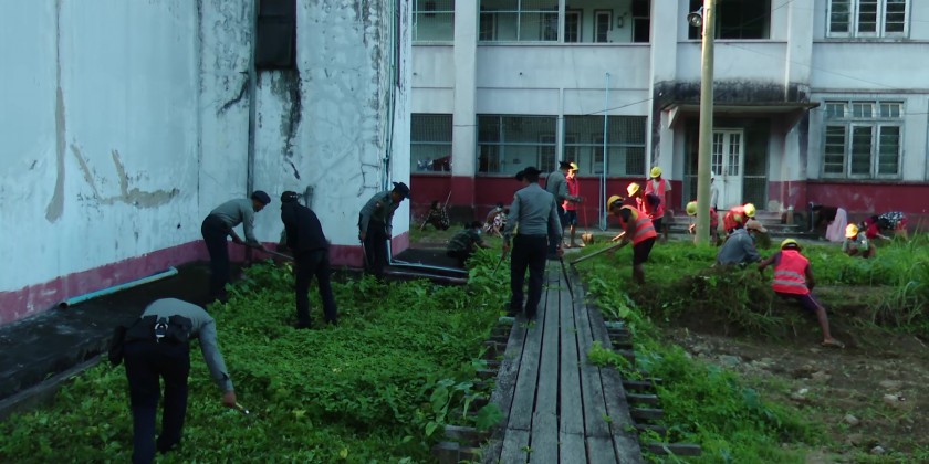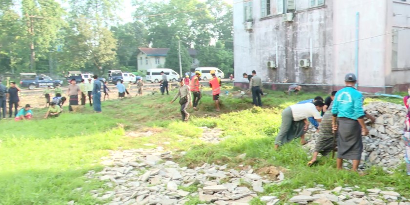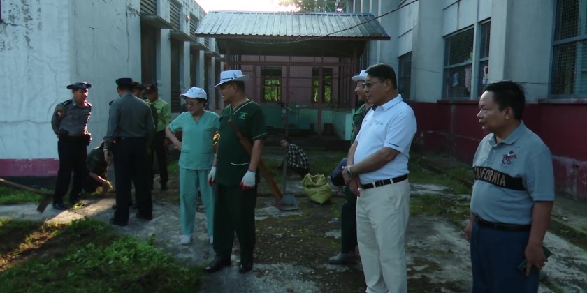 The Kachin State Government conducted a collective cleaning campaign on Saturday, with Chief Minister U Khet Htein Nan and government officials overseeing the sanitation efforts within the 500-bed People's Hospital compound in Myitkyina.