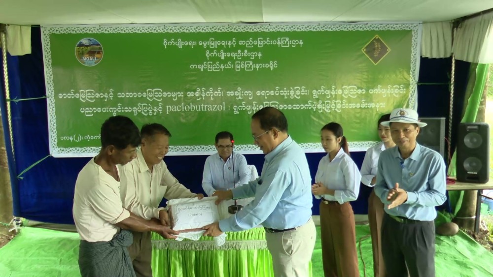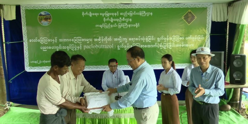 This was followed by the provision of Paclobutrazol, foliar and potash fertilizers. A farmer gave words of thanks for the provision and outlined plans for joint crop production efforts. The Chief Minister, concerned officials, and farmers later viewed the thriving monsoon paddy fields in Kantkaw Myaing, where they observed the use of natural and chemical fertilizers and foliar application.