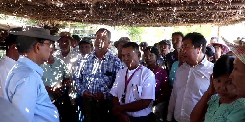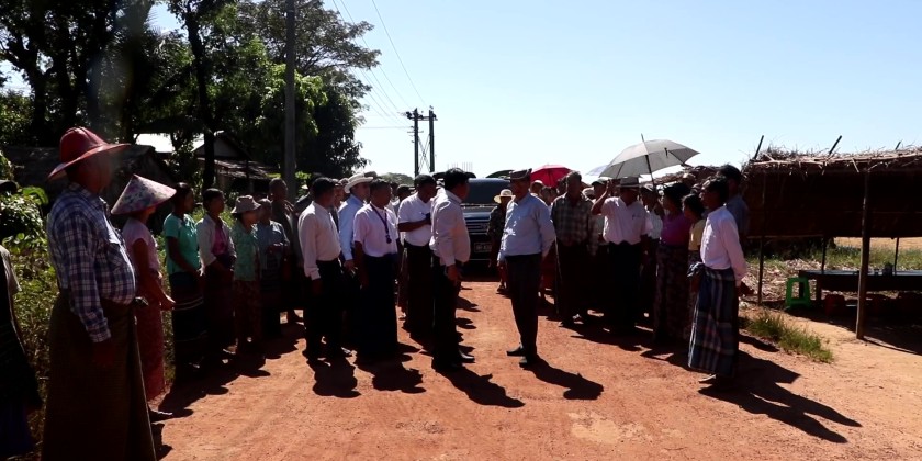 In Shwe Tan Village, he inspected the upgrading of a 5-furlong road into concrete and urged villagers to maintain the road for long-term use and plant shade trees along the entrance roads. The Chief Minister also met with local farmers and instructed for expansion of cultivating high-value Pawsan rice varieties for export markets.