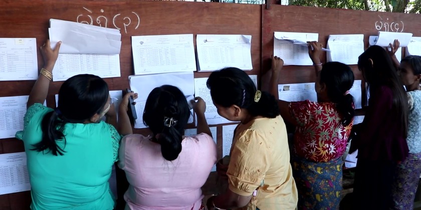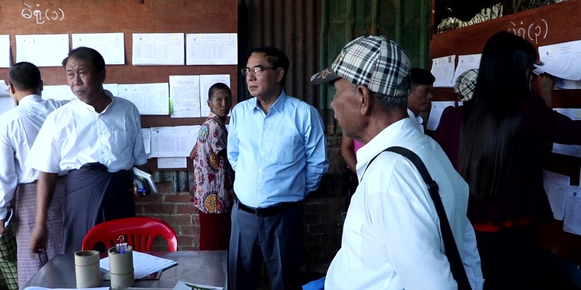 Bago Region Chief Minister U Myo Swe Win visited polling stations in Bago Township on Sunday, where demonstrations of voting with MEVM electronic voting machines were being shown.