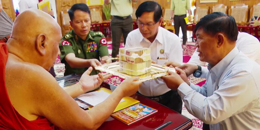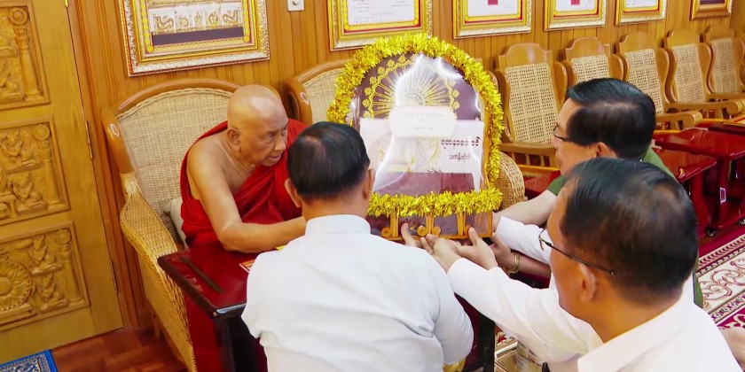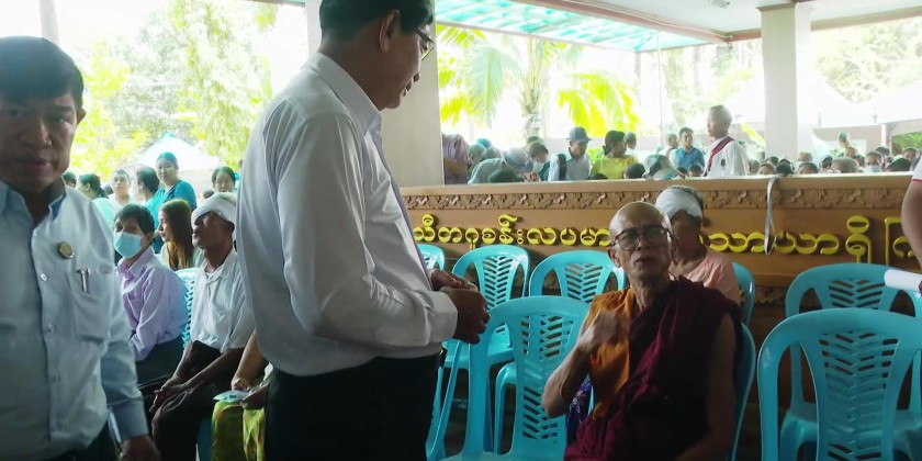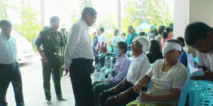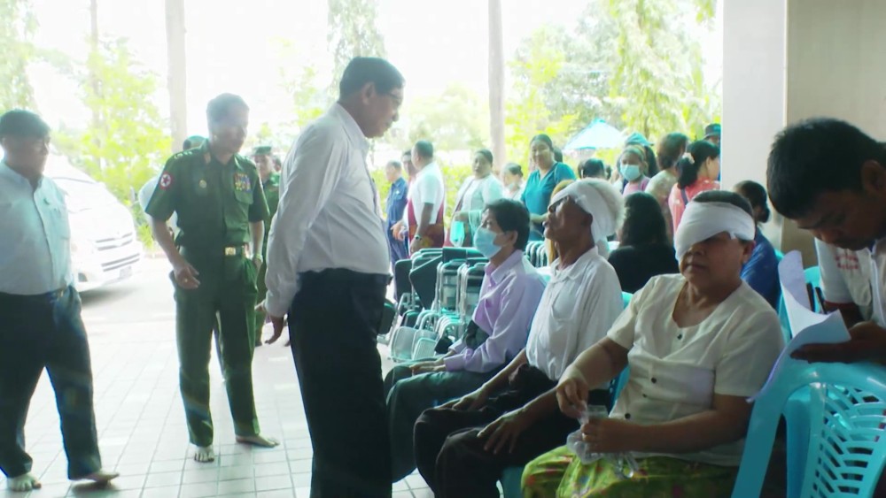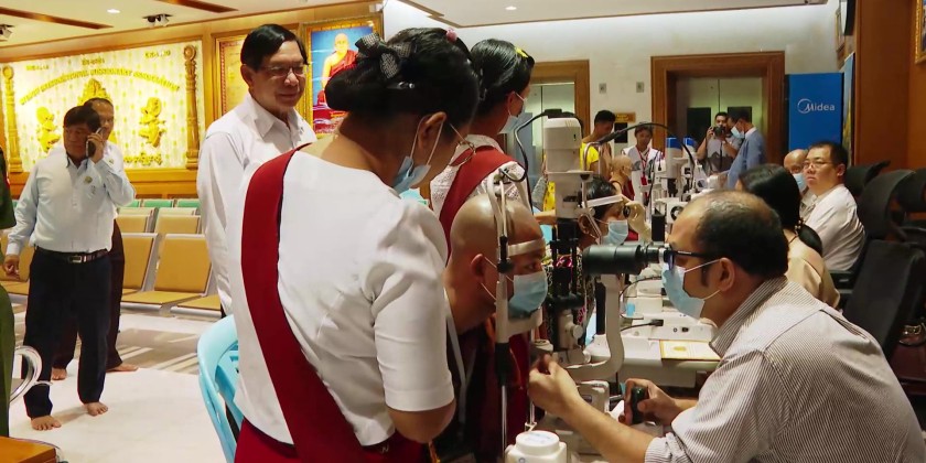 Yangon Region Chief Minister U Soe Thein and officials visited the hospital, paying respects to Sitagu Sayadaw Dr. Ashin Nyanissara and donated medical supplies and funds to support the treatment program. Specialist eye doctors conducted free check-ups and treatments according to each patient's needs.