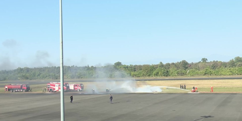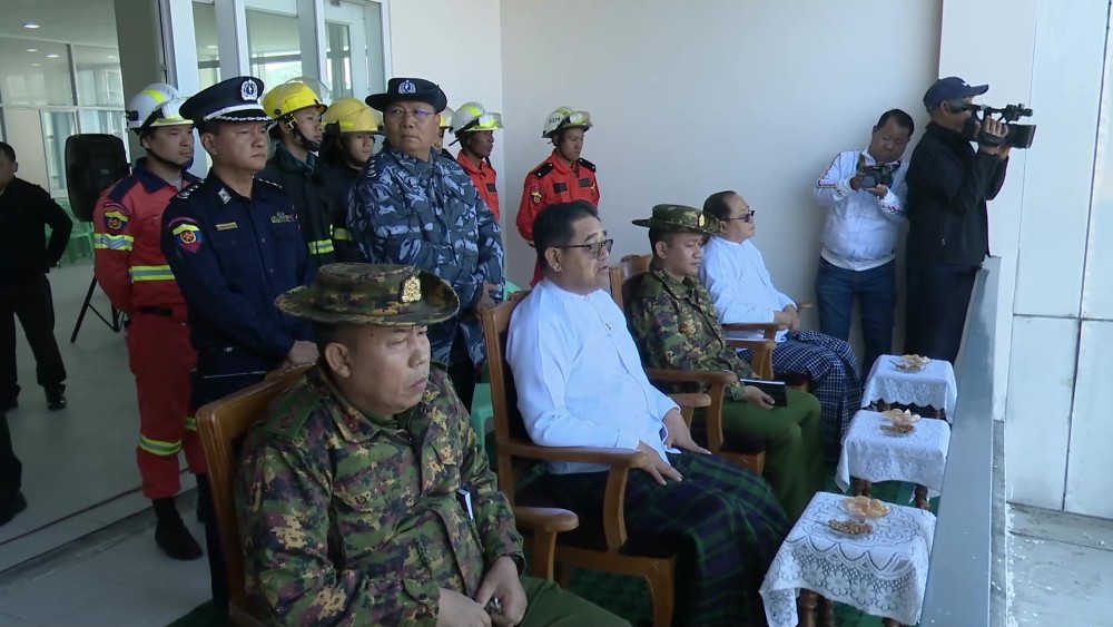 Chief Minister U Khet Htein Nan attended the event, together with officials. Fire officials explained fire prevention methods, fire extinguisher use, electrical fire risks, and airport fire safety measures. A practical fire drill, including aircraft fire simulation, was then demonstrated.