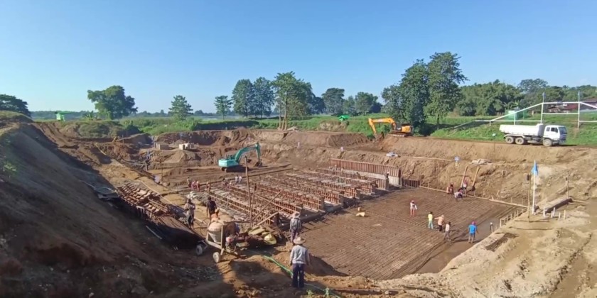 Kachin State Chief Minister U Khet Htain Nan on Wednesday inspected ongoing flood prevention works in Myitkyina, including the construction of sluice gates and stone embankments along the Ayeyawady River, aimed at protecting the city from flooding.