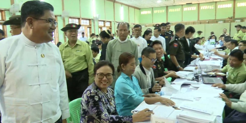In the afternoon, he visited the District Office Hall to observe the ongoing voter list verification process for the upcoming 2025 multi-party democracy general election, encouraging accuracy and coordination among election officers and administrators. He also attended the Statewide Buddhist Scripture Recitation Competition award ceremony at Sasana Beikmandawgyi, where he and state officials presented awards to winning students.