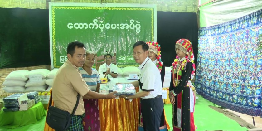 They later cheered the match between Lucky FC and Every One FC. They then proceeded to the OMF Lisu temporary relief camp in Lekone (ZiOnn)  Ward and warmly greeted the displaced families. The Chief Minister and party provided 55 bags of rice, 55 viss of oil, and 1,100 eggs to 55 households.
