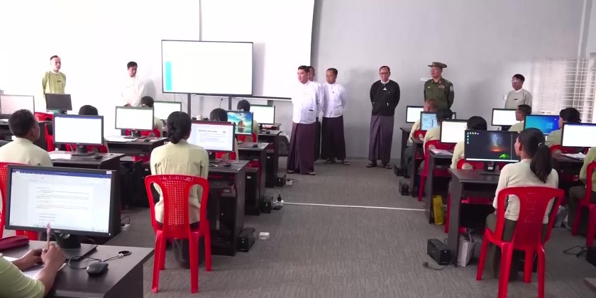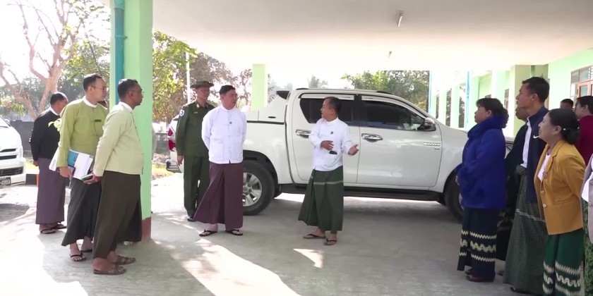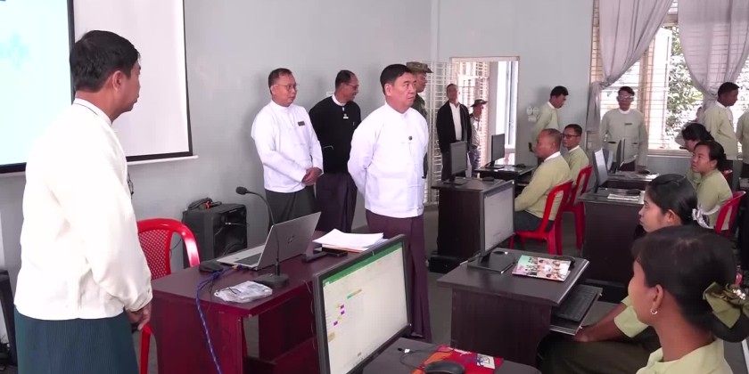 Then, the Chief Minister heard reports by the officials, toured around the office to oversee the cleaning tasks of the office. The Chief Minister and party later proceeded to the University of Computer Studies (Sittwe) and inspected the conducting of computer basic training course to the staff from General Administration Department.