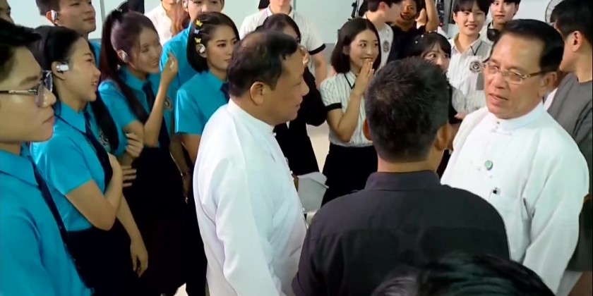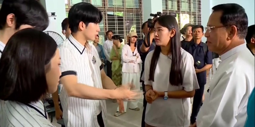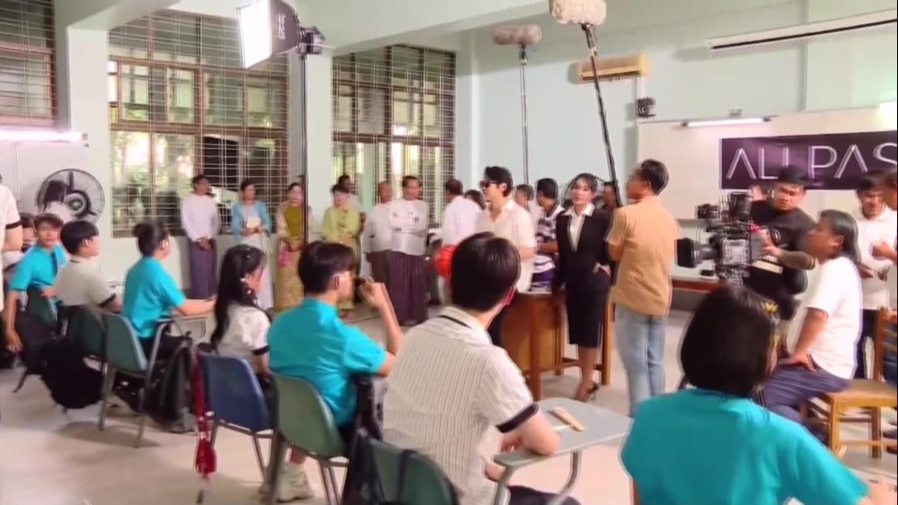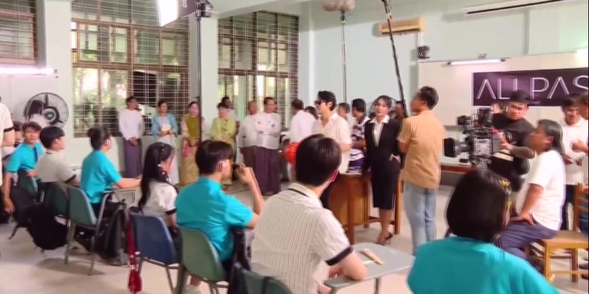 The project is part of a Myanmar–Korea friendship and cultural exchange program. The Union Minister viewed the filming of a classroom scene and greeted the artists, presenting the fruit baskets. The youth drama series titled All Pass is led by well-known Korean director Shin Ki-won.