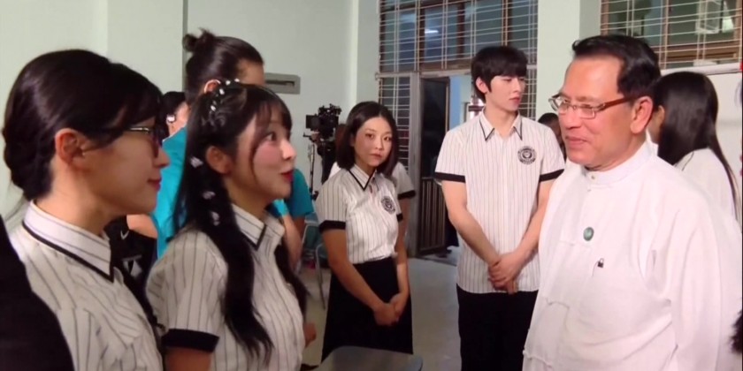 Union Minister for Information U Maung Maung Ohn visited the University of Foreign Languages, Yangon on Wednesday, to observe the filming of a Myanmar–Korea joint TV drama.