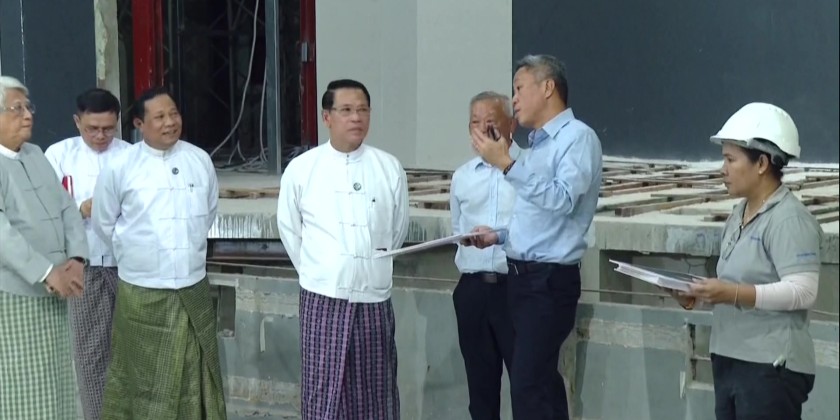 In the afternoon, Union Minister U Maung Maung Ohn visited the upgraded Waziya Cinema. Officials from the Myanmar Architects Council and the responsible company explained the renovation progress. The Union Minister said that electricity and water systems are already completed and urged to complete the remaining work as soon as possible.
