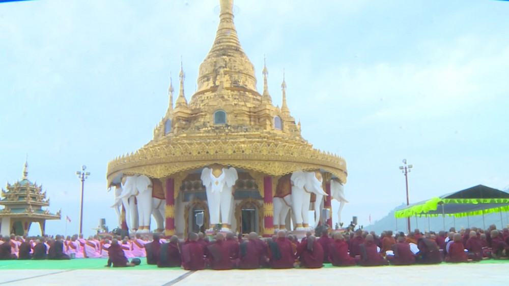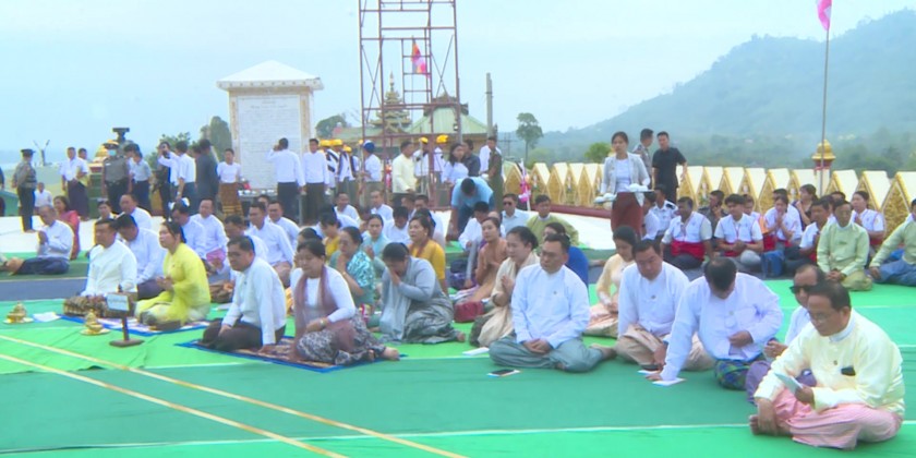 Kachin State Government held a ceremony for Maha Samaya Day at Shwe Moe Taung Pagoda in Mai Nar Village of Waimaw Township on Friday.