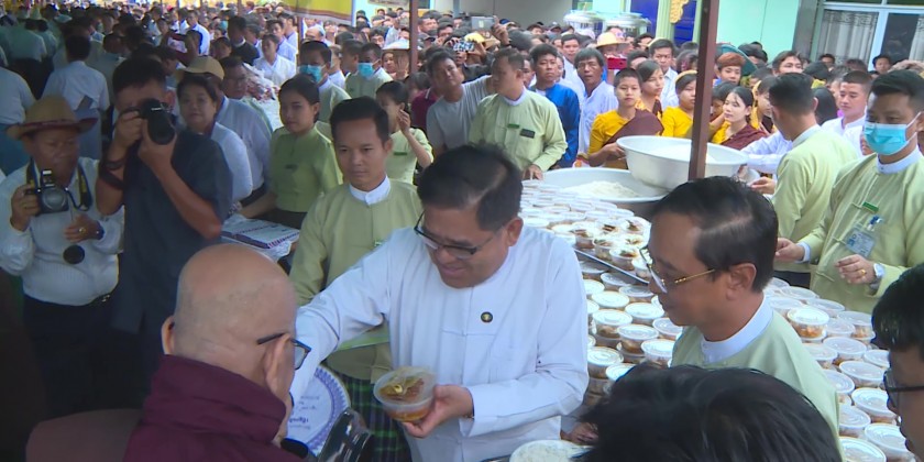 The State Social Affairs Minister later submitted the religious matters and listened to the sermon delivered by the members of the Sangha. it was followed by offering of meal, rice and offertories to the Sayadaws and members of the Sangha.