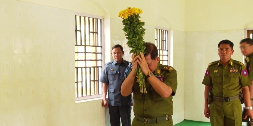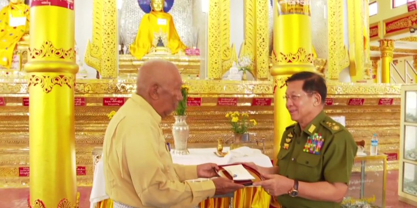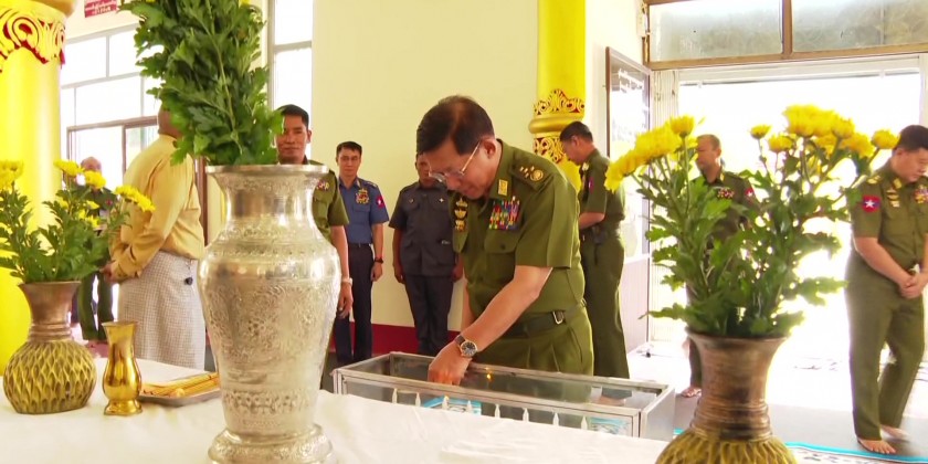 The Senior General and party later visited Maha Shwe Myin Tin Pagoda, and offered flowers and lights, making cash donation for all-round renovation of the pagoda. The Senior General also offered flower, water and lights to the Buddha Image at Pada Footprint Hall, and paid homage to the Pada Footprint.