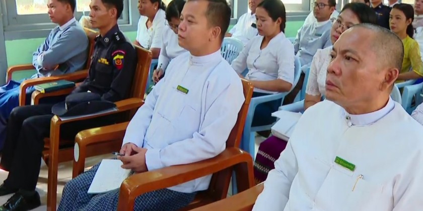 Officials responded the questions from attendees, and the Deputy Speaker coordinated the needs. After that, he visited a construction site for a new Buddha Sasana Beikmandawgyi in Tatkone Township, which was damaged by the March 28, 2025 Mandalay earthquake.