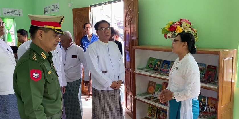 After that, the Chief Minister and concerned officials toured around the library and instructed the officials to encourage young people to nurture the reading habits and to ensure daily operation of the library. The Chief Minister awarded cash rewards to the young readers at the library and also donated books and periodicals and 3 million kyats cash assistance for the library.