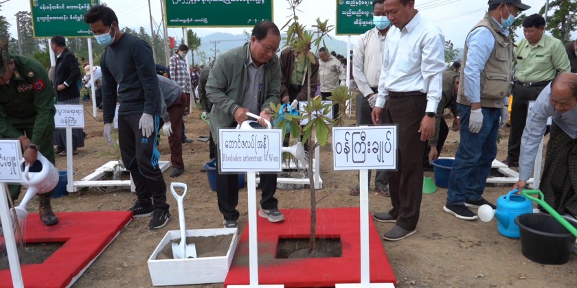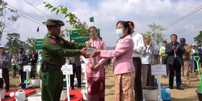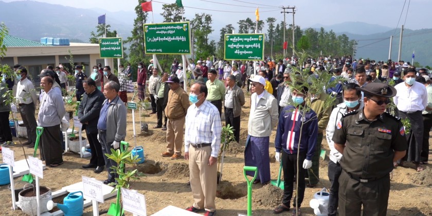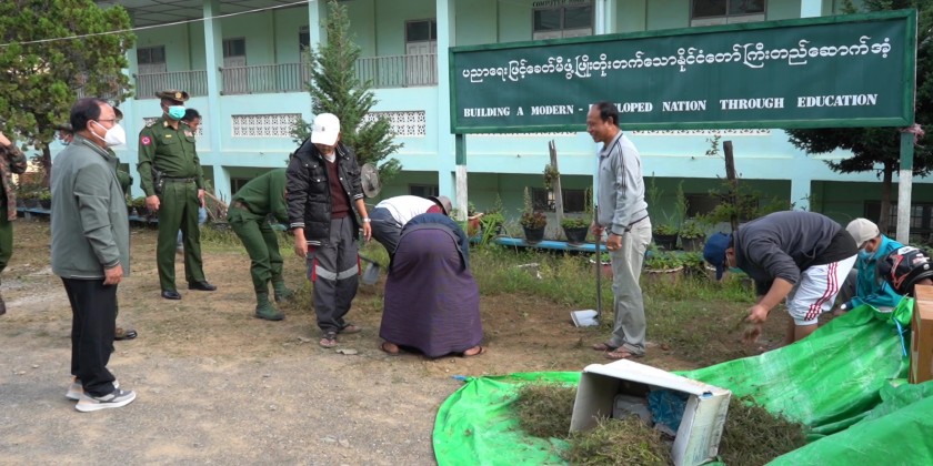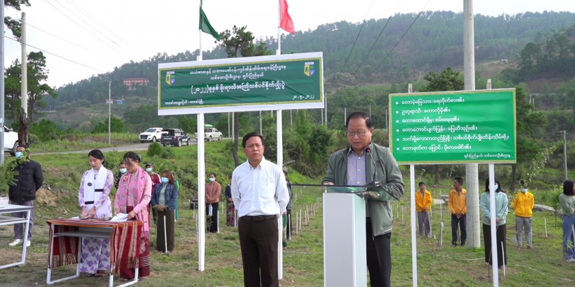 The Chief Minister later attended a tree planting ceremony in the compound of Hakha University. The ceremony was organized by the Chin State Forestry Department as an activity for greening environ in pre-monsoon period. The Chief Minister and the Deputy Commander of Northwest Command planted the saplings together with the attendees.