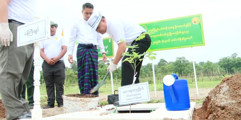 Under the guidance of the Kachin State Government, the Department of Rural Road Development conducted 2023 monsoon season trees planting ceremony at Sports and Physical Education Institute in Maw Phaung Village of Myitkyina Township on Wednesday.