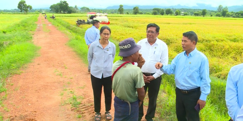 They then proceeded to the summer paddy seed production fields at the Pinlaung junction where they inspected the harvesting process and instructed the necessaries to the farmers.