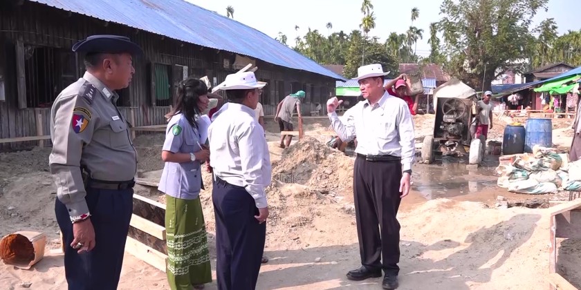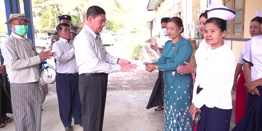 They later toured Man Aung People's Hospital, meeting medical staff, comforting patients, and reviewing 24-hour solar power systems installed with state support. They later inspected renovation of Myoma Market, ensuring cleanliness, safety, and orderly construction.