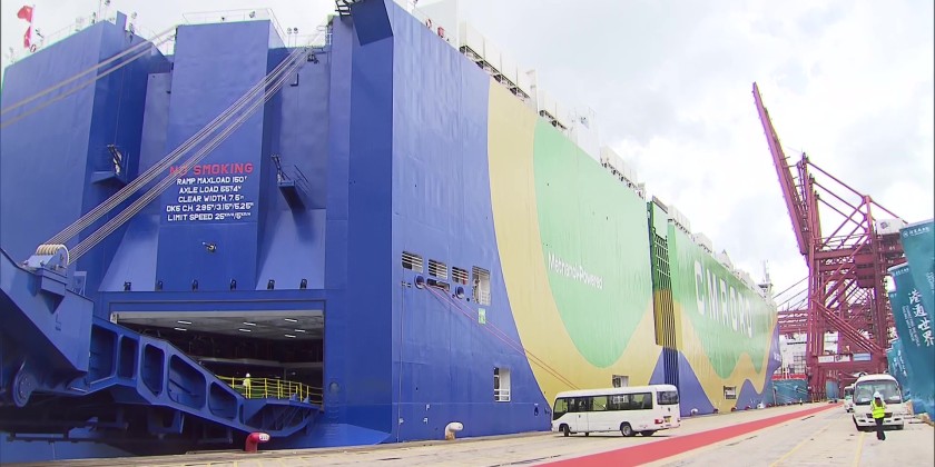 The world’s first methanol-powered transoceanic car carrier has set sail from Tsing Yi, carrying nearly 10,000 vehicles to Europe. By using green methanol as fuel, the ship can cut greenhouse gas emissions by more than 70 percent. With a total deck area of 78,000 square metres, equivalent to 11 standard football fields, the vessel offers over 9,400 parking spaces with 13 cargo decks and was built at a cost of 96 million U.S. dollars,