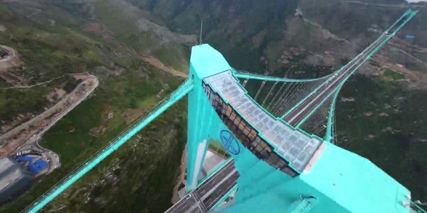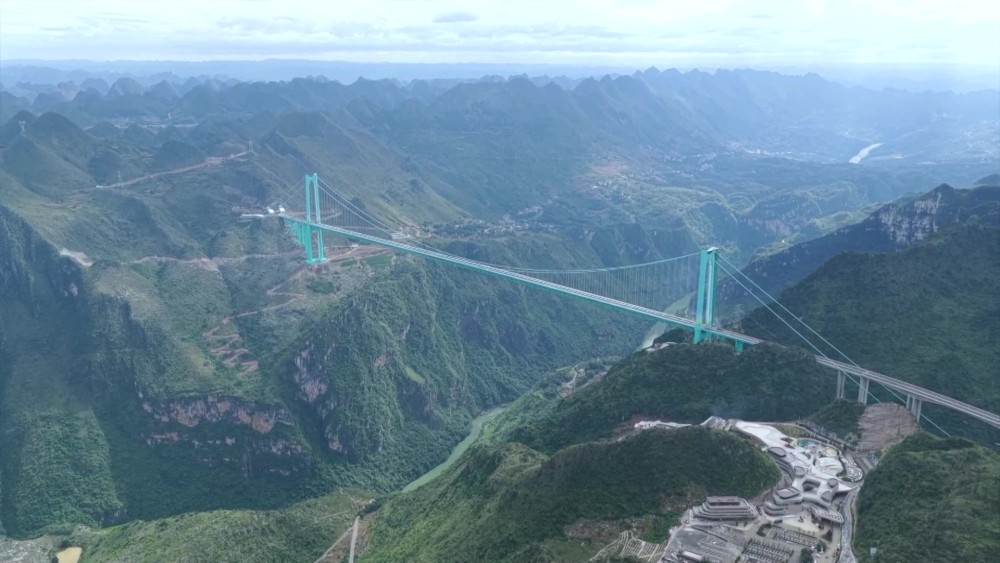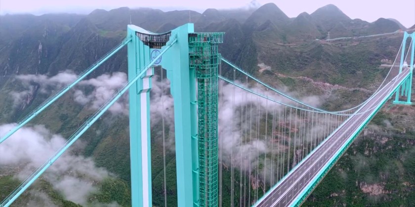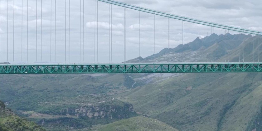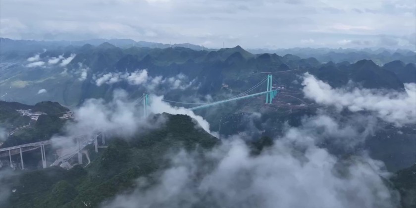 The Huajiang Canyon Bridge is a key control project of the Liuzhi to Anlong Expressway in Guizhou Province. It is 2,890 meters long, with a main bridge span of 1,420 meters and a height from the bridge deck to the water surface of 625 meters.