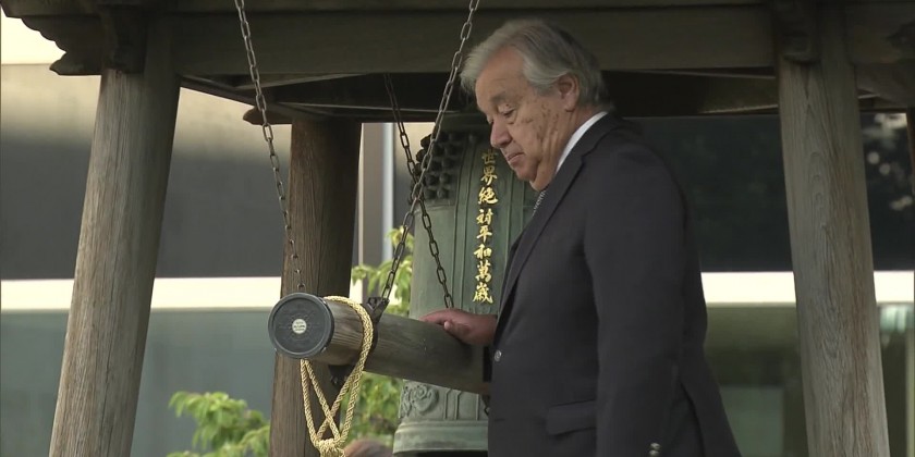 The Peace Bell was donated by a Japanese peace activist from the western prefecture of Ehime, in 1954. The bell was cast from coins given by more than 60 countries.Guterres then called for the world “to cultivate a culture of peace,” and expressed hope this call “may ring out around the world.” He offered a moment of silence and rang the bell.