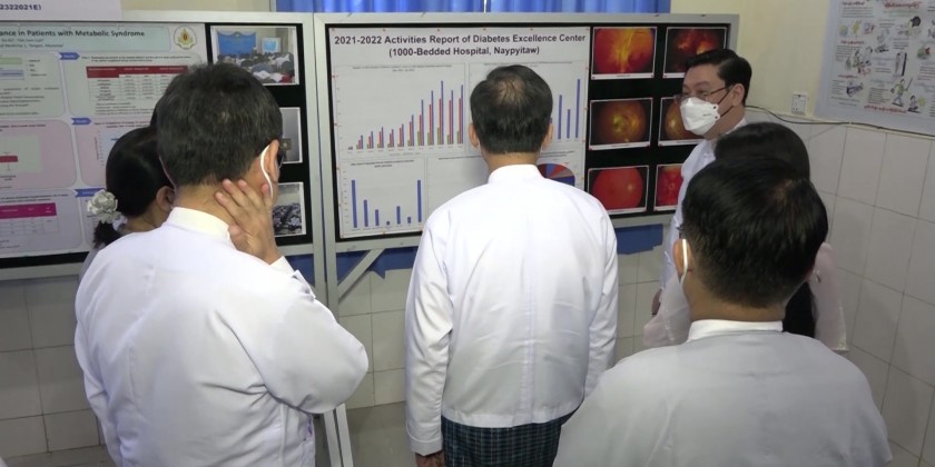 Then, the project manager of the Diabetes Prevention and Control Project reported on the efforts of the Ministry of Health for the control and prevention of the disease. Later, the Union Minister and party visited the Diabetes Treatment Education Center in the 1000- bed Nay Pyi Taw General Hospital and looked into treatments to diabetes patients.